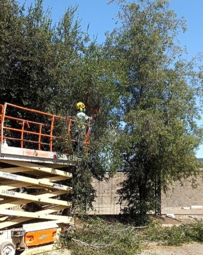 Mantención de áreas verdes, poda estética de árboles en altura y retiro de maleza.
